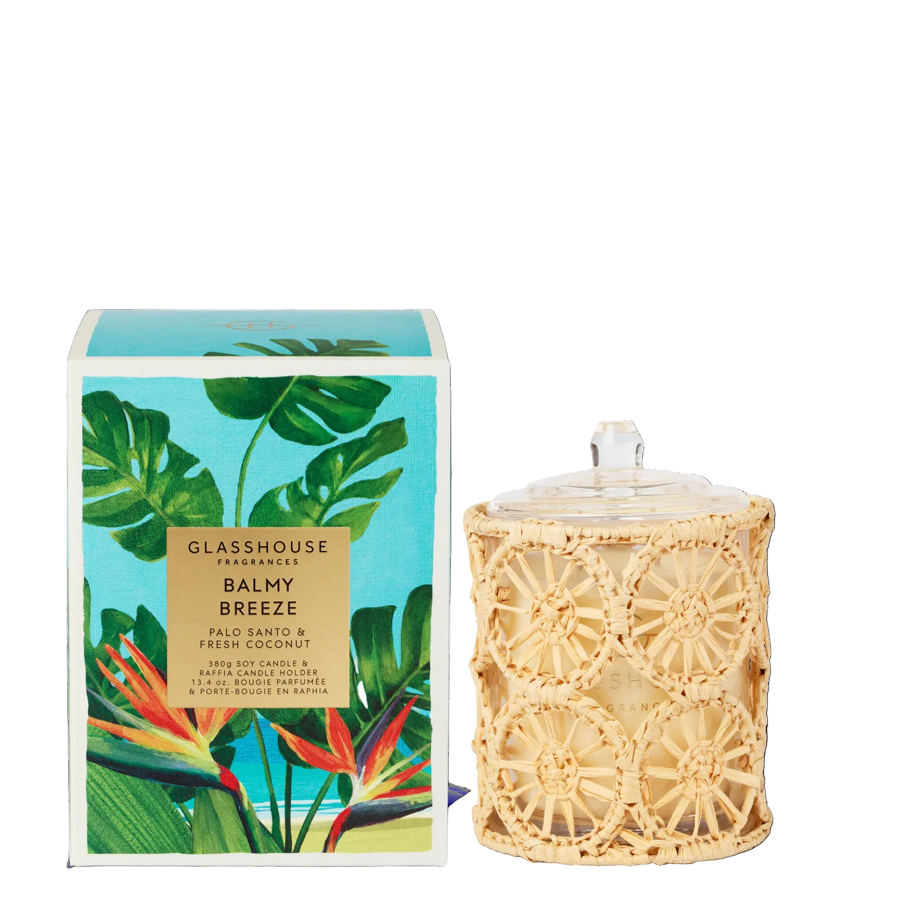 Escape to sun-drenched shores with Balmy Breeze, our 380g triple scented soy candle. The warm, smoky embrace of Palo Santo mingles beautifully with lush Frangipani and creamy Coconut, transporting you to a tropical paradise with every flicker. Crafted from premium soy wax, this candle burns cleanly and evenly, filling your space with an enchanting fragrance that lingers long after the flame dims. Perfect for creating those peaceful moments you deserve, wherever you are.