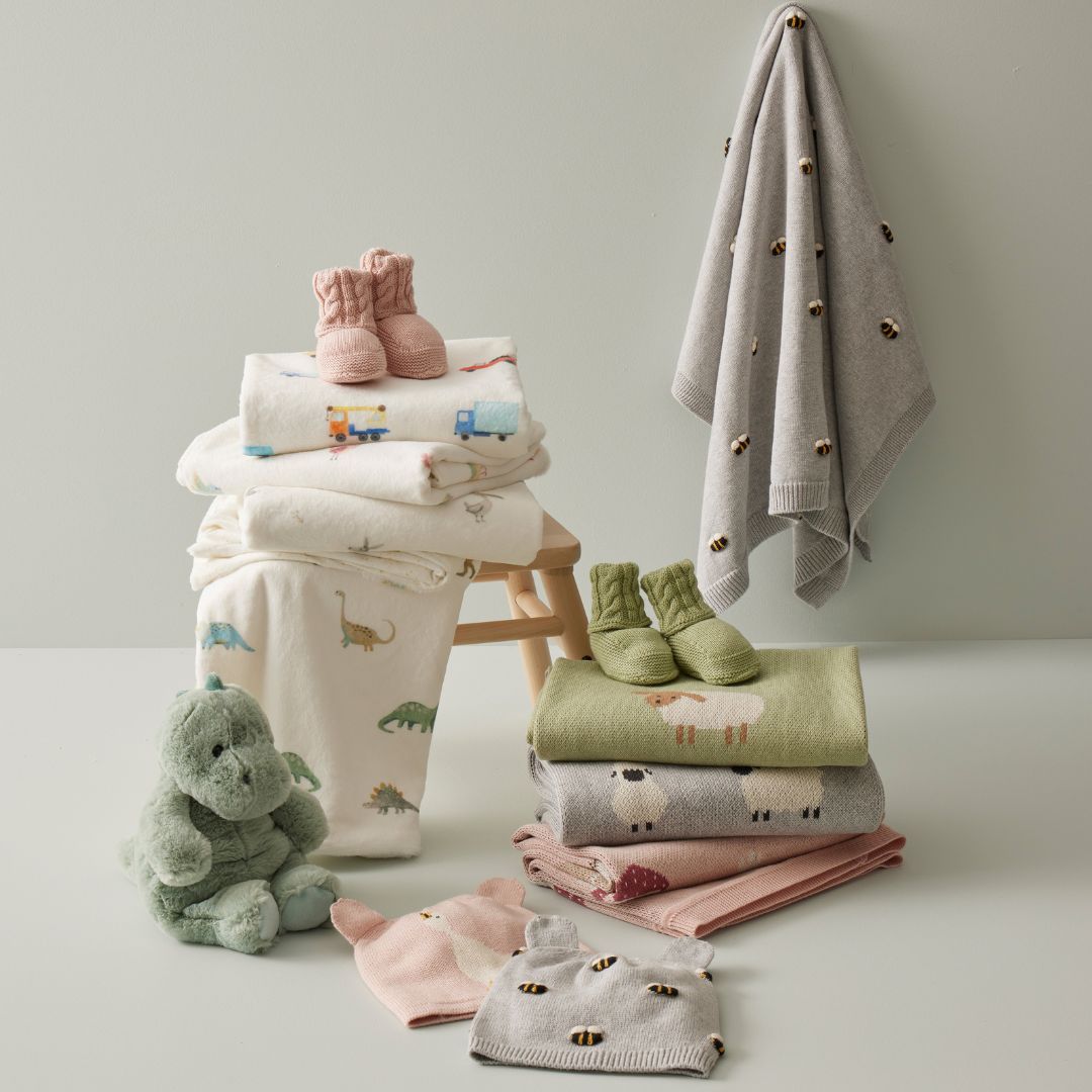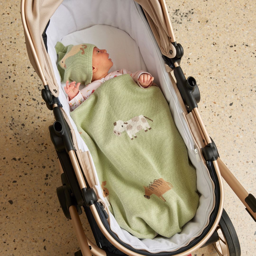 The Little Meadows Blanket is luxuriously soft and perfect for using in the cot or pram on colder days. This jacquard blanket is a quality knit made from 100% cotton and features our adorable friends from the meadow!