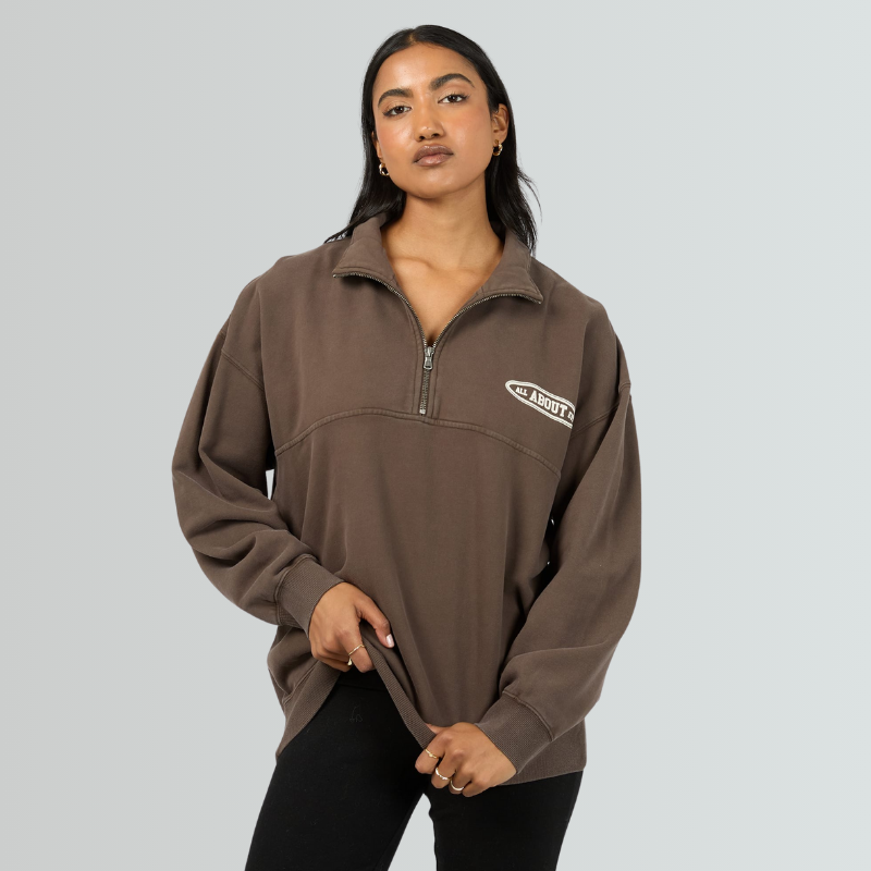 Retro-inspired quarter zip with a fun twist! Rocking subtle chest graphics and a bold back print, this pre-washed fleece comes in go-with-everything neutrals. Your new favourite grab-and-go piece for casual coolness!