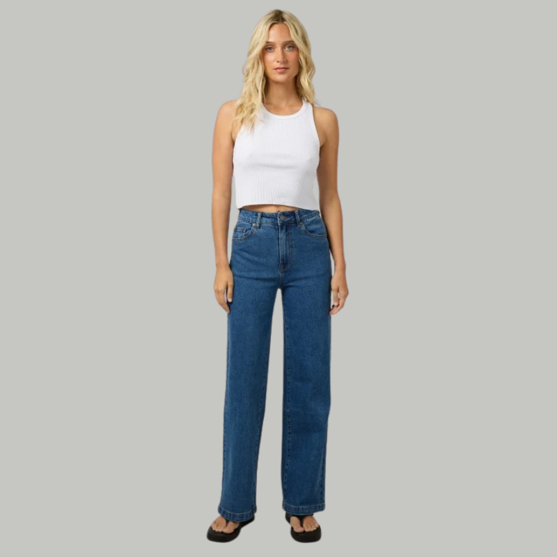 The Jacqui Wide Leg Jean in Heritage Blue offers a perfect blend of comfort and timeless style. Made from stretch denim, its high-waisted, relaxed wide leg design ensures ease of movement and a flattering fit. The clean hem and contrast topstitch detail add a refined touch, while practical features like belt loops, five pockets, shanks, rivets, and a metal zip fly complete this versatile wardrobe essential. Elevate your casual look with jeans designed for both style and lasting comfort.