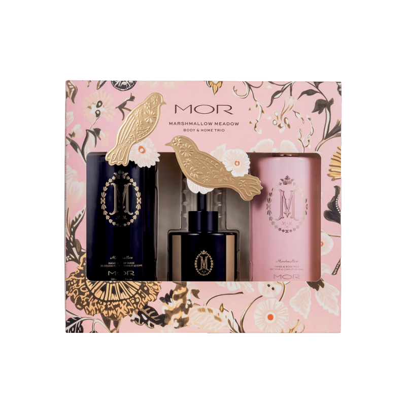 Experience the captivating essence of untamed nature with the Marshmallow Meadow Body & Home Trio. This expertly curated set features a Marshmallow Hand & Body Wash and Milk, delivering gentle hydration and a silky feel to your skin. Complemented by a Marshmallow Reed Diffuser, it fills your living space with a warm, indulgent aroma. Perfect for enthusiasts of the rich Marshmallow scent, this trio enhances both your skincare routine and home environment with a refined, sensory escape.