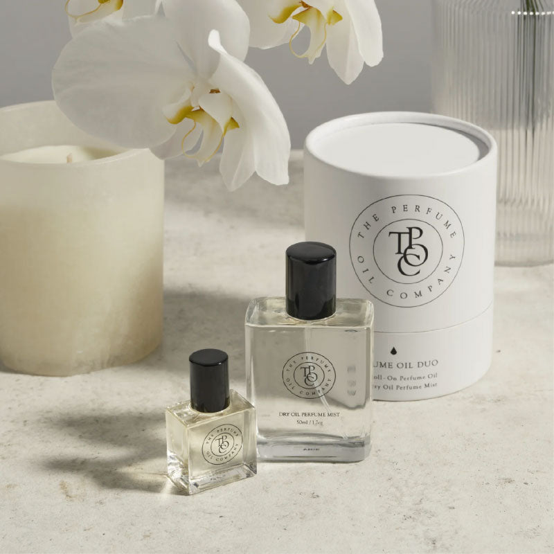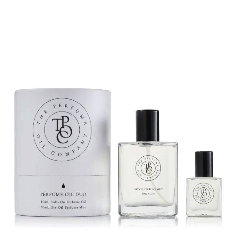 Sets includes a 50mL Dry Oil Body Mist with a matching 10mL Roll-On Perfume Oil