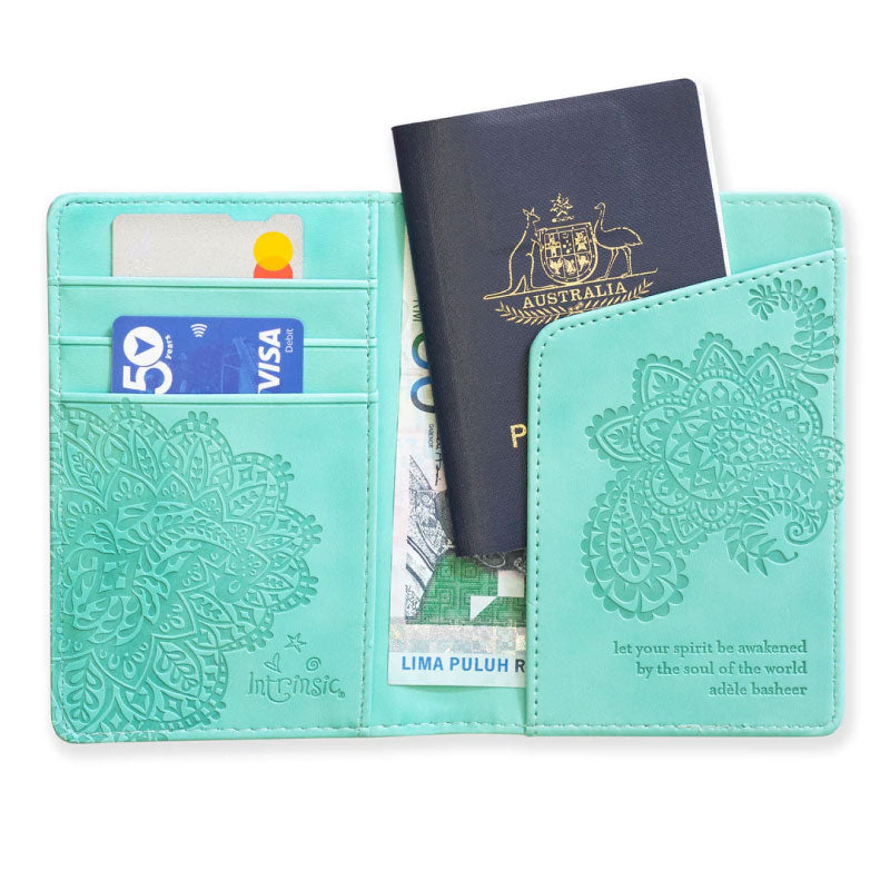 The Tahitian Turquoise Passport Wallet is designed for travellers who value both style and organisation. The embossed boho floral patterning and inspirational travel quotes add a touch of elegance and wanderlust to this vegan leather wallet. With ample pockets for your passport, tickets, money, and cards, your essential travel items will be neatly stored and ready for adventure.
