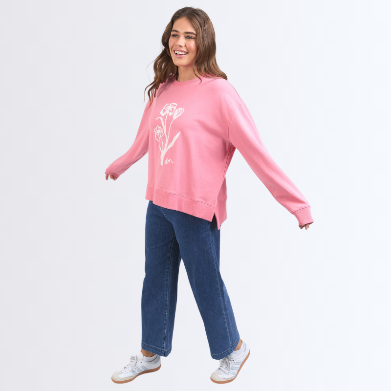 The Tulip Crew is a must-have for any fashion-forward individual. With an exclusive graphic print by the talented Elm team, this classic jumper will add a pop of color to any outfit. Perfect for pairing with your favorite jeans, it's both stylish and fun.