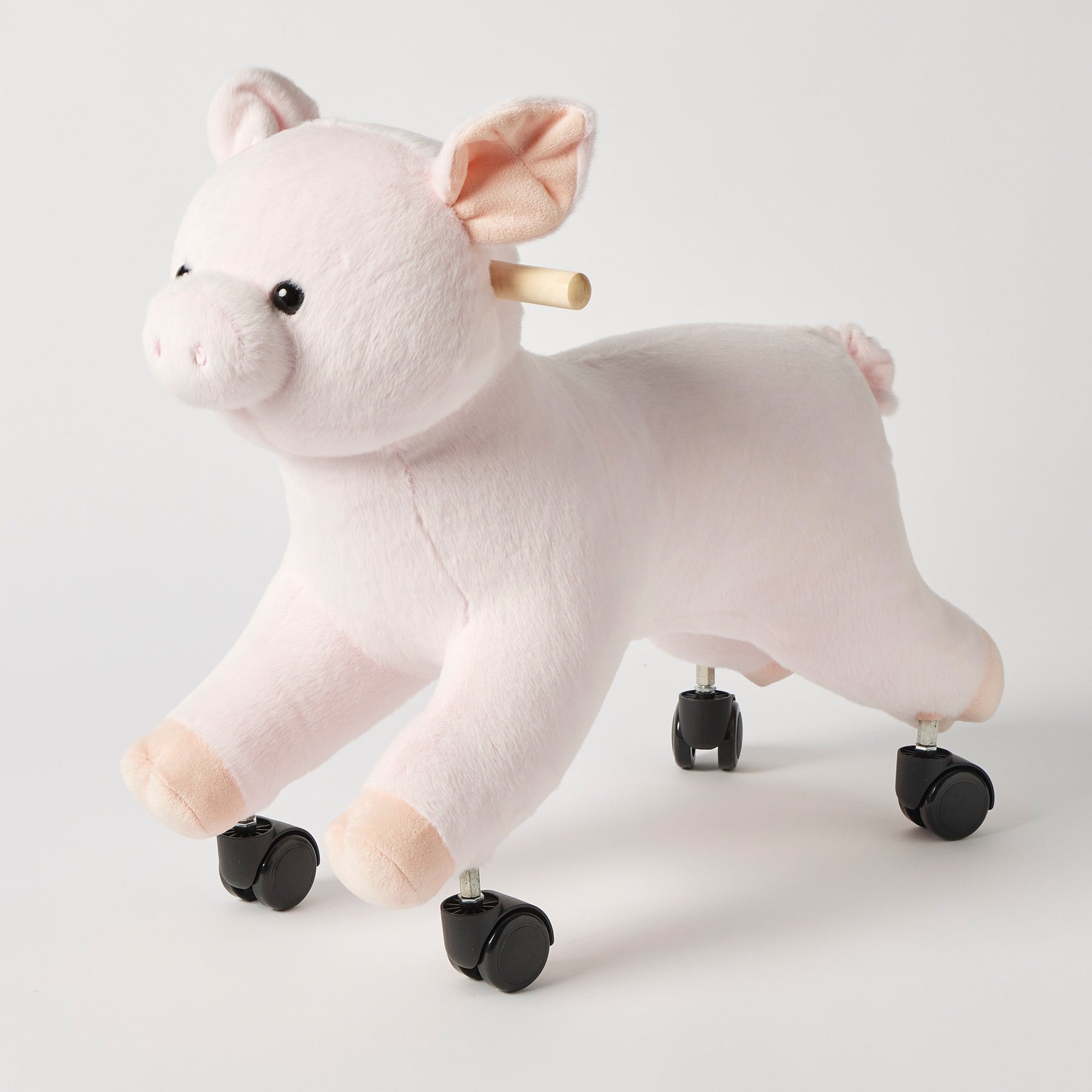The Pig Roller from the Jiggle & Giggle collection offers a delightful blend of plush comfort and sturdy design. Featuring a soft pastel-pink body and smooth castor wheels, it glides effortlessly indoors while wooden handles provide secure support for little hands. This charming ride-on toy encourages active movement and imaginative play, making it an elegant choice for baby gifts or stylish nursery displays.