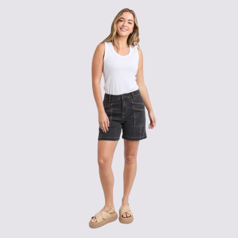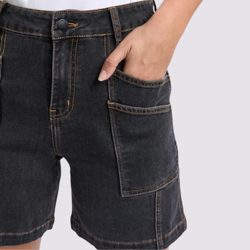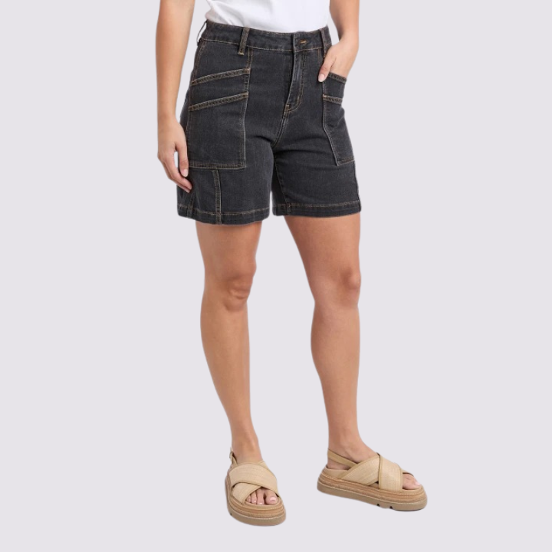 Meet your new go-to denim essential! The Balmy Short combines timeless style with modern comfort in a washed black finish. Featuring a fixed waistband, classic button opening, and practical pockets, this flattering cut is designed for effortless summer days. The contrast stitching adds a playful edge to traditional denim, while the 98% cotton and 2% elastane blend ensures a comfortable, flexible fit that moves with you. Perfect for pairing with your favourite tees and sandals.
