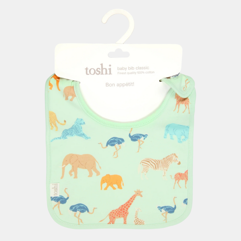 The Bib Down Under - Congo Oasis combines exclusivity with practicality, featuring an original Toshi print on soft, 100% cotton fabric. Its absorbent cotton towelling backing keeps your baby dry and comfortable, while adjustable press studs ensure a perfect fit as your little one grows. Designed to be gentle on delicate skin, this bib offers both style and reliable protection during mealtime. Embrace functional elegance with this versatile essential – bon appetit!