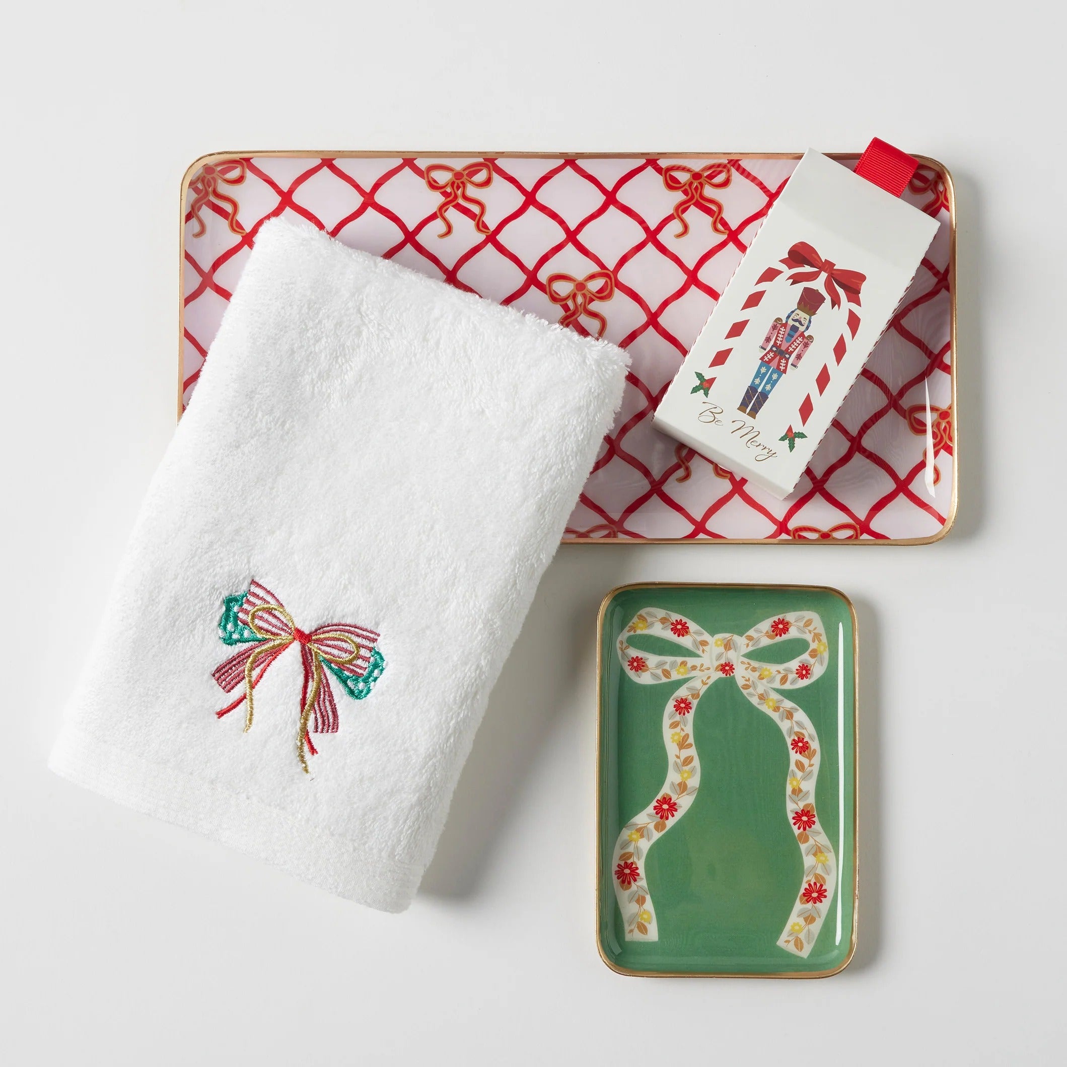 Elevate your entertaining with the Celebrations Tray, expertly crafted from iron with elegant gold-toned edging. Featuring a playful champagne tower topped with bows and ribbon details, this tray is ideal for cocktail enthusiasts and adds a refined yet whimsical touch to any bar cart display. It also makes a thoughtful, sophisticated gift that celebrates joyful moments with