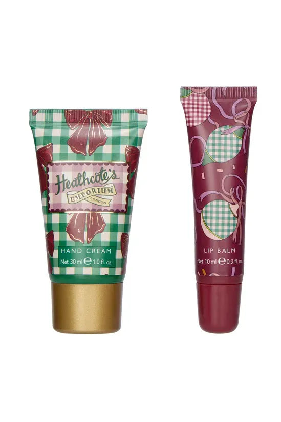 Indulge in the luxurious care of Heathcote's Emporium Festive Hand Cream & Lip Balm Gift Set. This elegant duo features a richly hydrating 30ml hand cream designed to soften and nourish dry skin, paired with a 10ml lip balm that soothes and protects for a smooth, supple finish. Perfectly crafted for the festive season, this set offers a sophisticated approach to daily skincare, making it an ideal gift or personal treat.