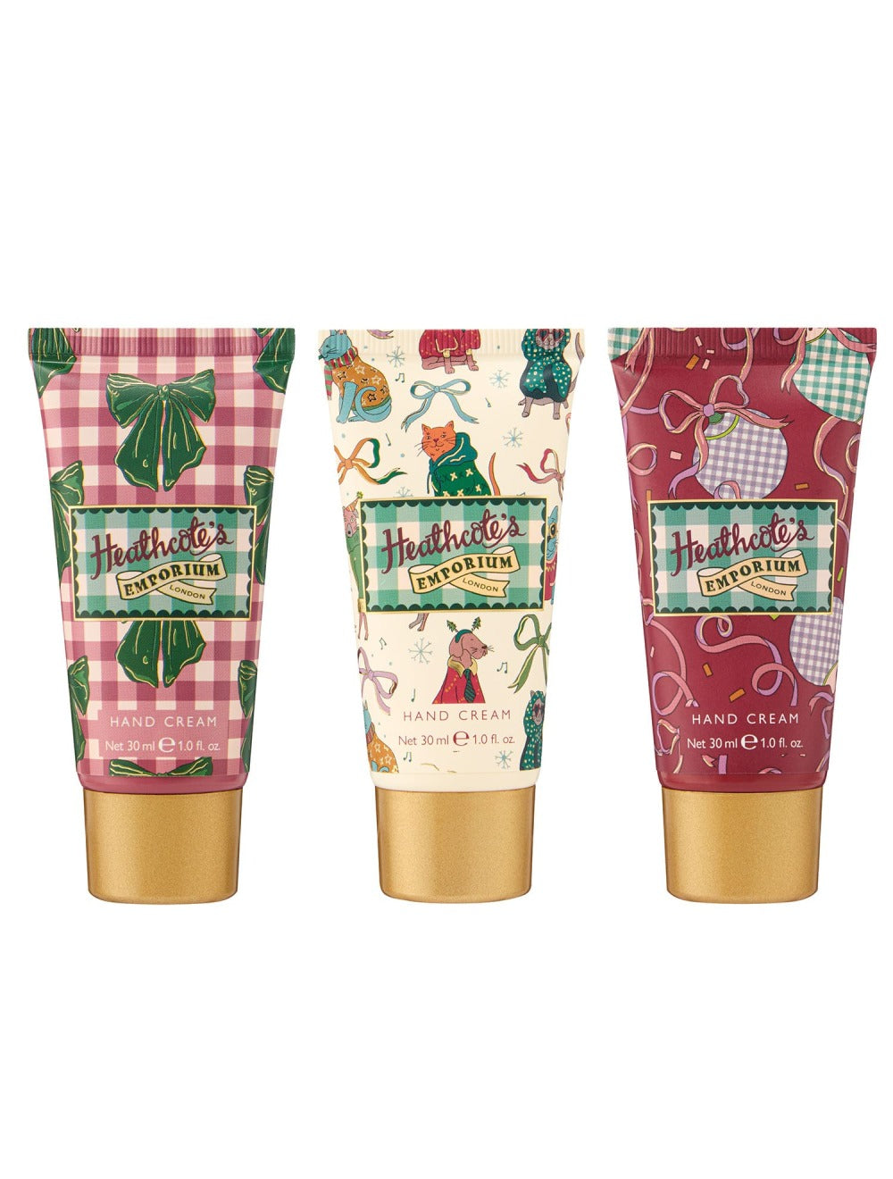Heathcote’s Emporium Festive Hand Cream Trio offers an elegant blend of rich hydration and festive charm. Each hand cream is delicately scented and beautifully presented with hand-painted illustrations evoking nostalgic holiday scenes, perfect for gifting. Luxurious yet practical, this trio nourishes skin while embodying the warmth and whimsy of the season, making it an