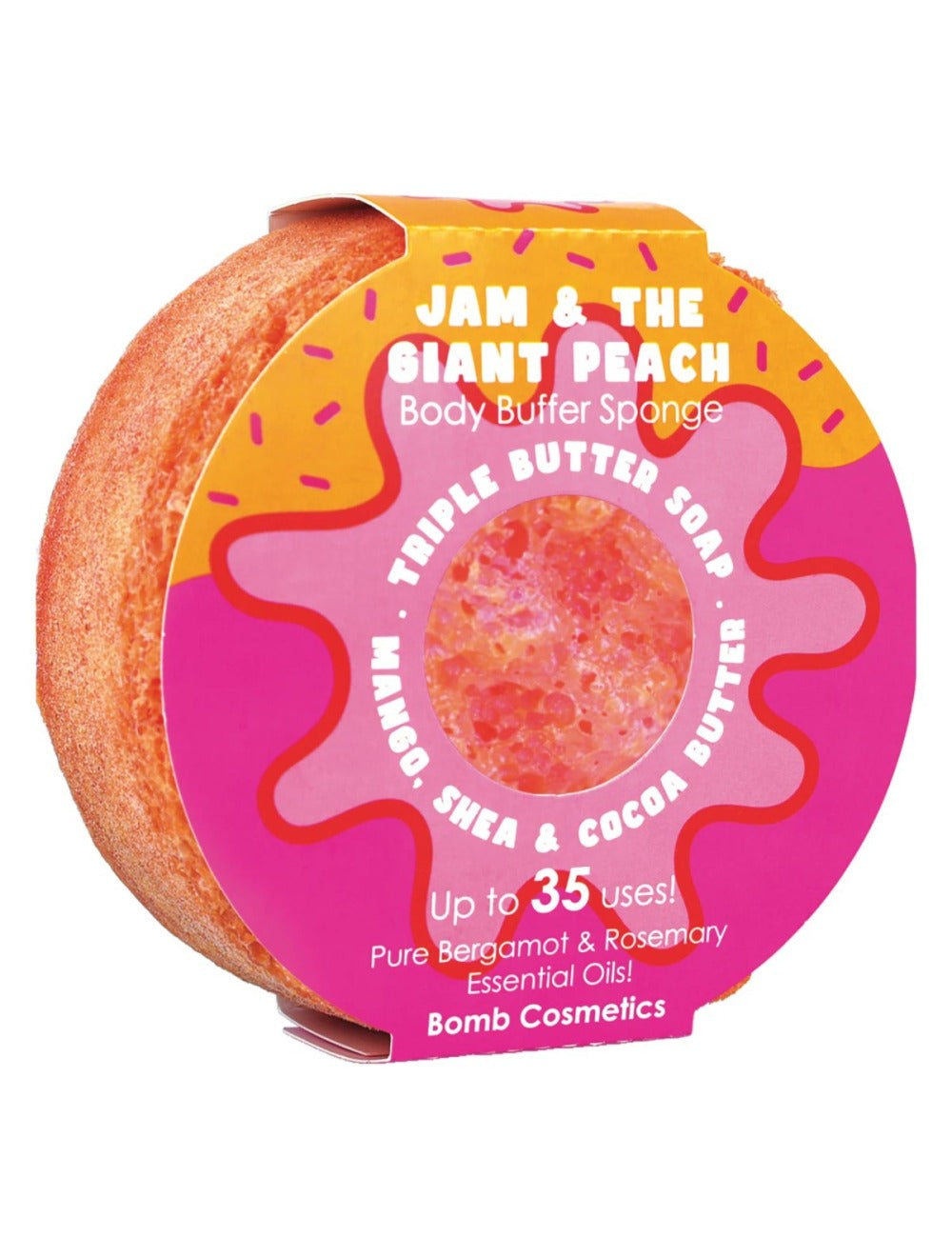 Transform your shower into a whimsical adventure with the Jam and the Giant Peach Body Buffer Sponge! This handcrafted marvel gently exfoliates, cleanses, and massages your skin while infusing it with nourishing essential oils. Inspired by literary magic, each sponge is uniquely created by Bomb Cosmetics' skilled artisans, making yours truly one-of-a-kind. Cruelty-free and made with natural ingredients, it's the perfect way to add a splash of colour and fragrance to your daily routine. Pure indulgence, guilt-free.