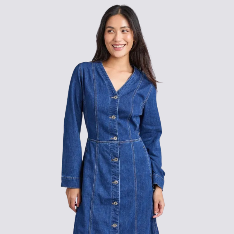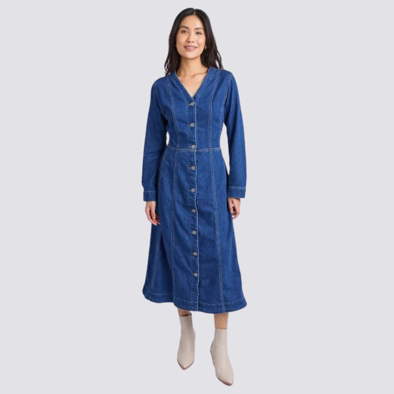 The Mariella Denim Dress is your new cool-weather obsession! Expertly designed panels sculpt and celebrate your silhouette, while sumptuous stretch denim feels so buttery soft you'll forget you're wearing it. Slip it on and discover the magic of a dress that's equal parts flattering and ridiculously comfortable—the kind you'll reach for again and again, no matter what the day throws at you.