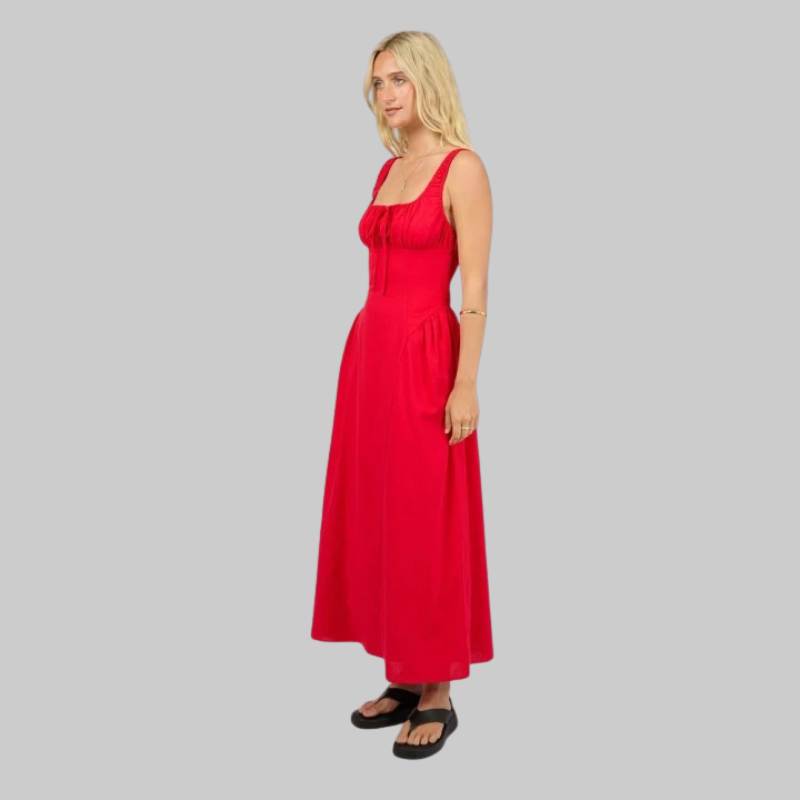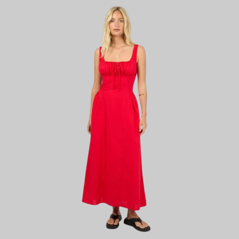 Twirl into elegance with the Mavis Maxi Dress—your new go-to for effortless style. This flowing maxi features a flattering silhouette that moves beautifully with you, whether you're heading to a summer soirée or a casual weekend adventure. The relaxed fit and graceful length make it perfect for layering or wearing solo. Dress it up with heels and jewellery, or keep it casual with sneakers and a denim jacket. Comfort meets sophistication in this versatile wardrobe essential that'll have you feeling fabulous from sunrise to sunset.