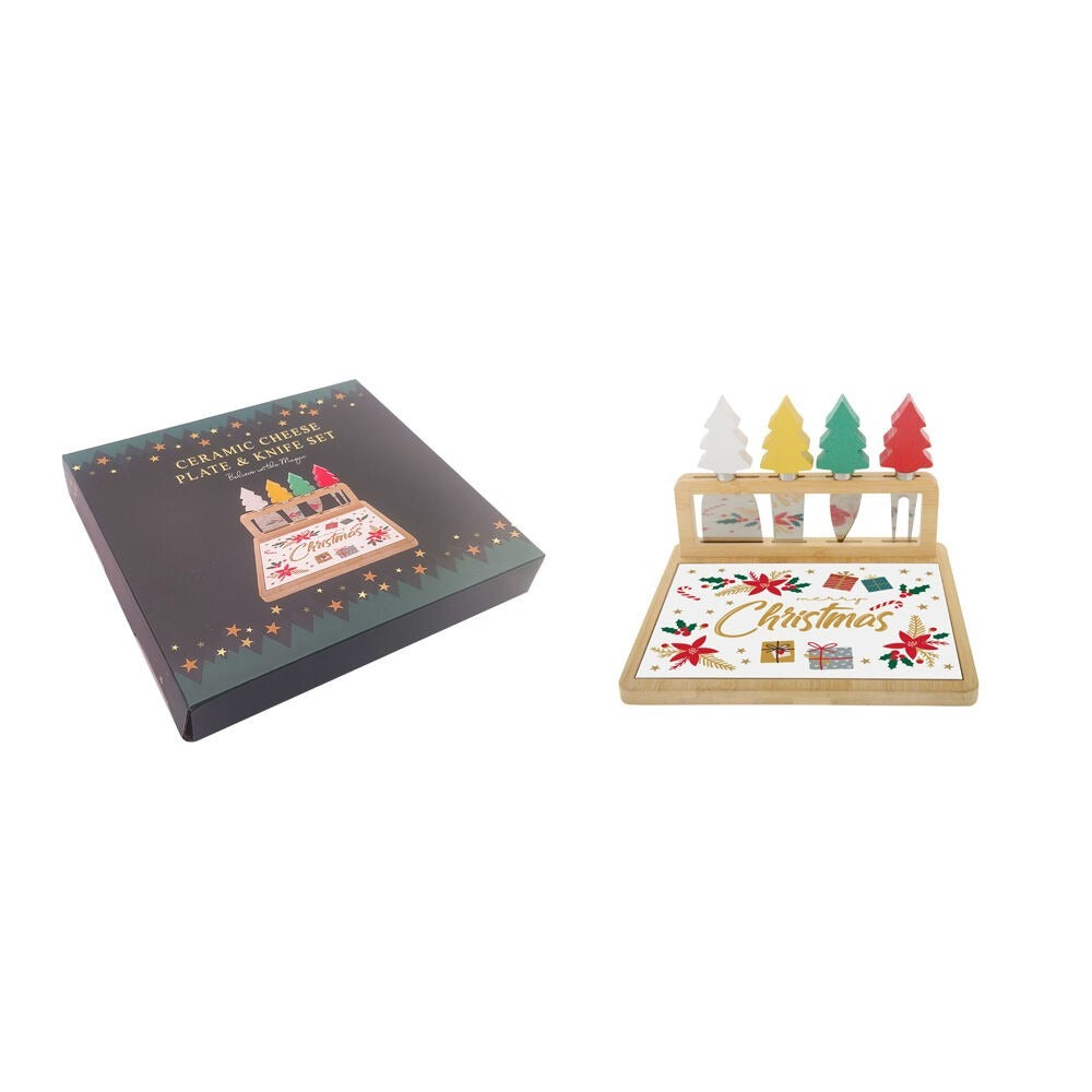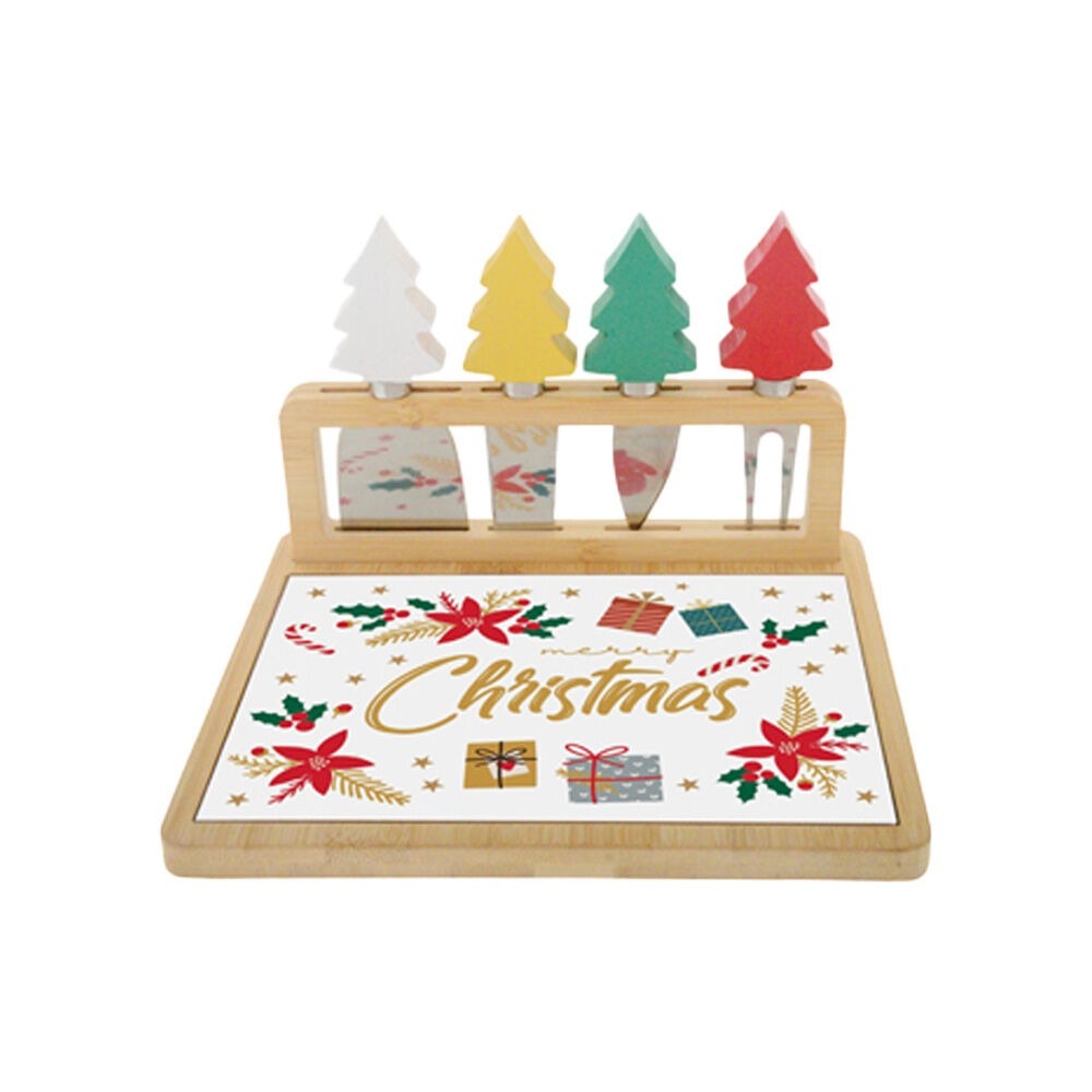 Xmas Cheese Board & 4 knife Set