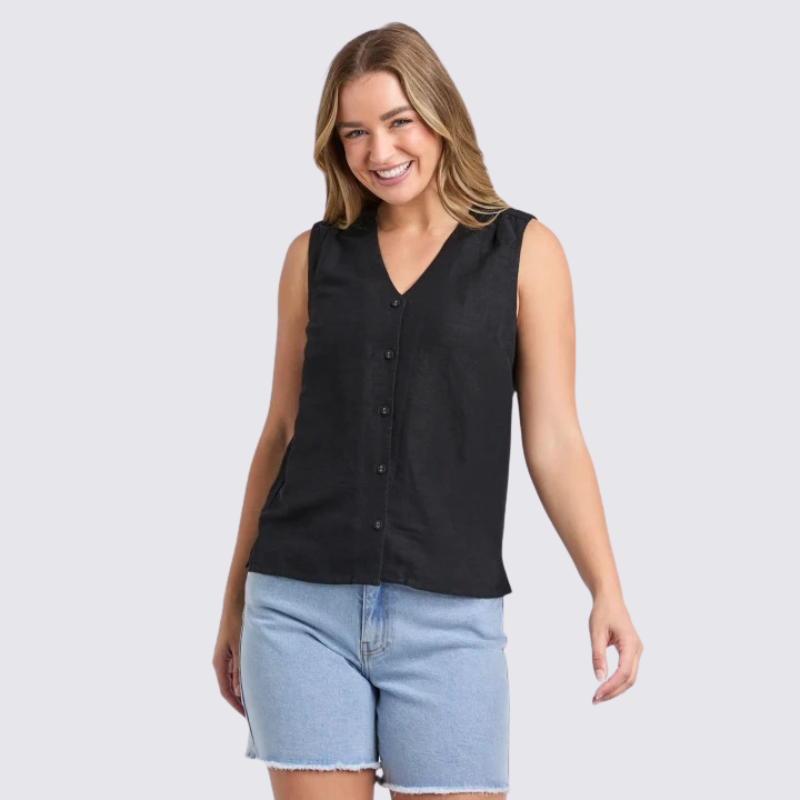 The Anara Top combines natural elegance with fluid comfort. Crafted from a refined blend of 53% linen and 47% viscose, this piece offers the breathable structure of linen balanced with viscose's luxurious drape. Perfect for effortless layering or standalone wear, the Anara Top transitions seamlessly from season to season, delivering understated sophistication with every wear.