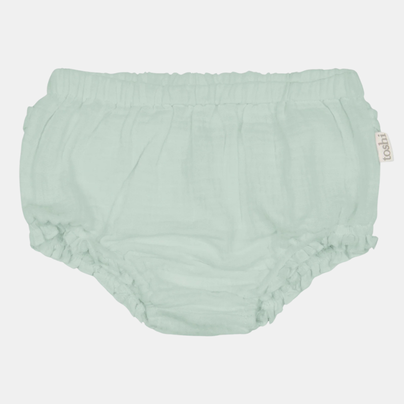 Toshi Baby Bloomers in Sammy Sage are constructed from certified organic cotton yarn in a breathable cheesecloth weave that feels exceptionally soft against delicate skin. The neutral sage tone serves as a versatile wardrobe foundation, seamlessly layering across seasons and occasions. Thoughtfully designed with elasticised waist for effortless dressing and nappy changes, these bloomers prioritise both comfort and freedom of movement during active play. Charming frills add visual interest while maintaining the relaxed aesthetic perfect for everyday wear or special moments. An essential piece for parents seeking quality, sustainable basics that grow with their child's wardrobe.