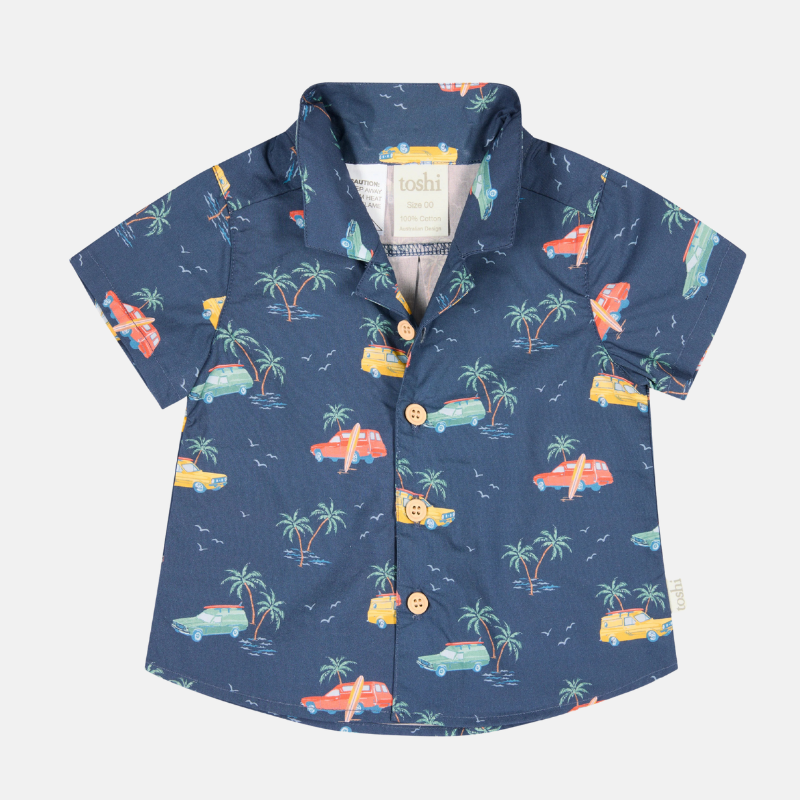 Meet the Boys Shirt Banjo from Toshi Baby—where comfort meets style for your little adventurer. Crafted from premium 100% cotton, this versatile piece features a classic collar and short sleeves perfect for layering or wearing solo. The front wooden button closure makes dressing a breeze, while the exclusive Swell Seekers print adds personality and charm. Built to withstand the rough-and-tumble of childhood play, this thoughtfully made shirt transitions seamlessly from casual days to special occasions. Quality construction ensures it'll be ready for whatever adventures come next.