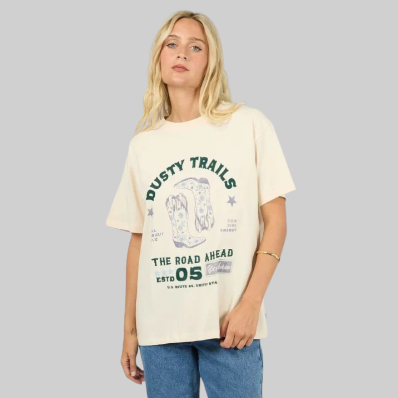 Effortlessly versatile, the Dusty Trails Relaxed Tee in Vanilla delivers understated sophistication through its thoughtfully designed silhouette. The relaxed fit provides comfortable movement without sacrificing structure, while the neutral vanilla tone seamlessly integrates into any wardrobe. Crafted for those who appreciate quality basics, this tee balances casual ease with refined simplicity, making it an essential layering piece or standalone staple for any season.