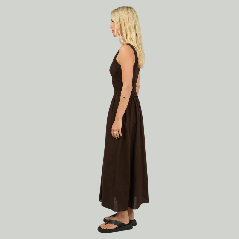 The Essential Maxi Dress in Brown is a versatile wardrobe staple designed for effortless elegance. This floor-length silhouette offers timeless appeal, transitioning seamlessly from casual daytime wear to evening occasions. The rich brown tone complements a range of skin tones and pairs easily with accessories, making it a practical investment piece. Crafted for comfort and movement, this maxi dress delivers sophisticated style without compromise.