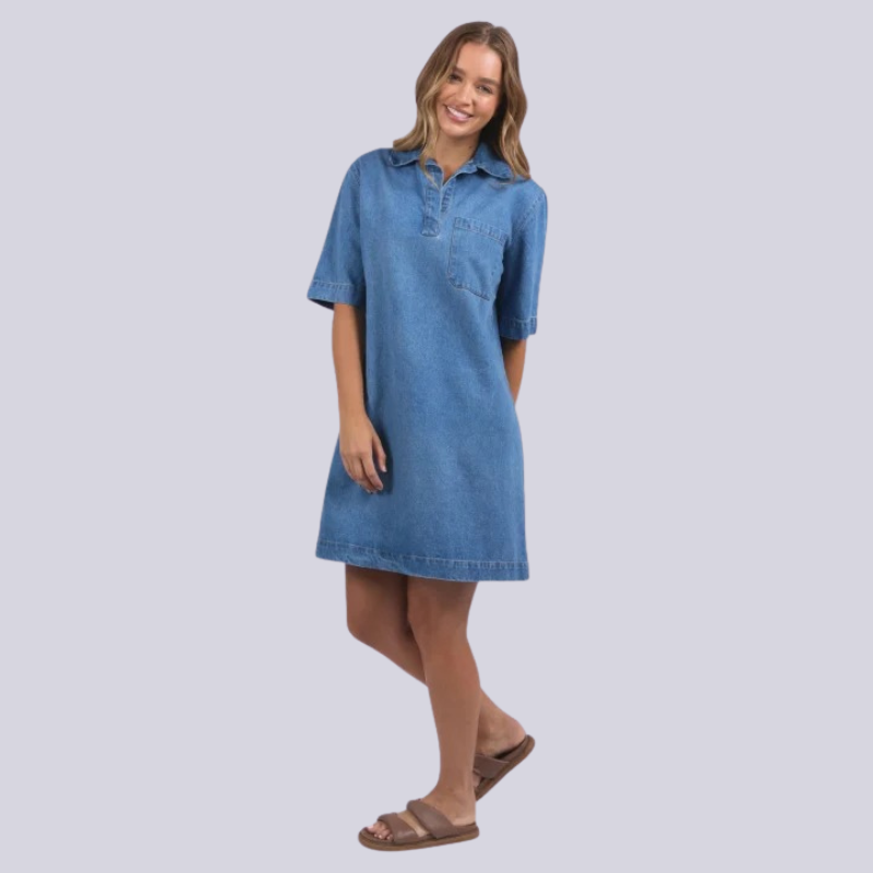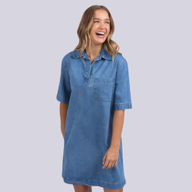 The Monte Shirt Dress effortlessly blends style and laid-back comfort. Its flattering vee neckline with collar adds a touch of sophistication, while the relaxed fit ensures all-day ease. Complete with a practical front chest pocket, this dress is your go-to for staying cool and casual without compromising on fashion. Perfect for those days when comfort is key but you still want to look effortlessly chic.