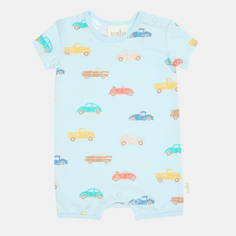 Introducing the Toshi Baby Onesie S/S Banjo—expertly designed for parents seeking premium comfort and practicality. This short-sleeve onesie is constructed from pure 100% cotton, providing a soft, breathable foundation that respects your baby's sensitive skin. Strategically placed press studs streamline nappy changes, eliminating unnecessary fuss during busy days. The signature Toshi print design adds character and style to your little one's wardrobe. A thoughtfully engineered essential that combines quality craftsmanship with everyday functionality.