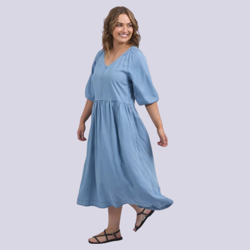 The Sawyer Chambray Dress combines comfort and style in a beautiful, relaxed fit that suits all body shapes. Made from soft lyocell chambray, this dress offers effortless wearability and a timeless silhouette you’ll love reaching for again and again. Perfect for any occasion, it brings ease and confidence to your wardrobe.