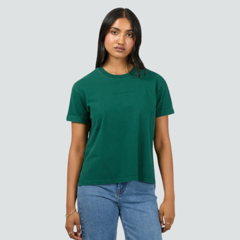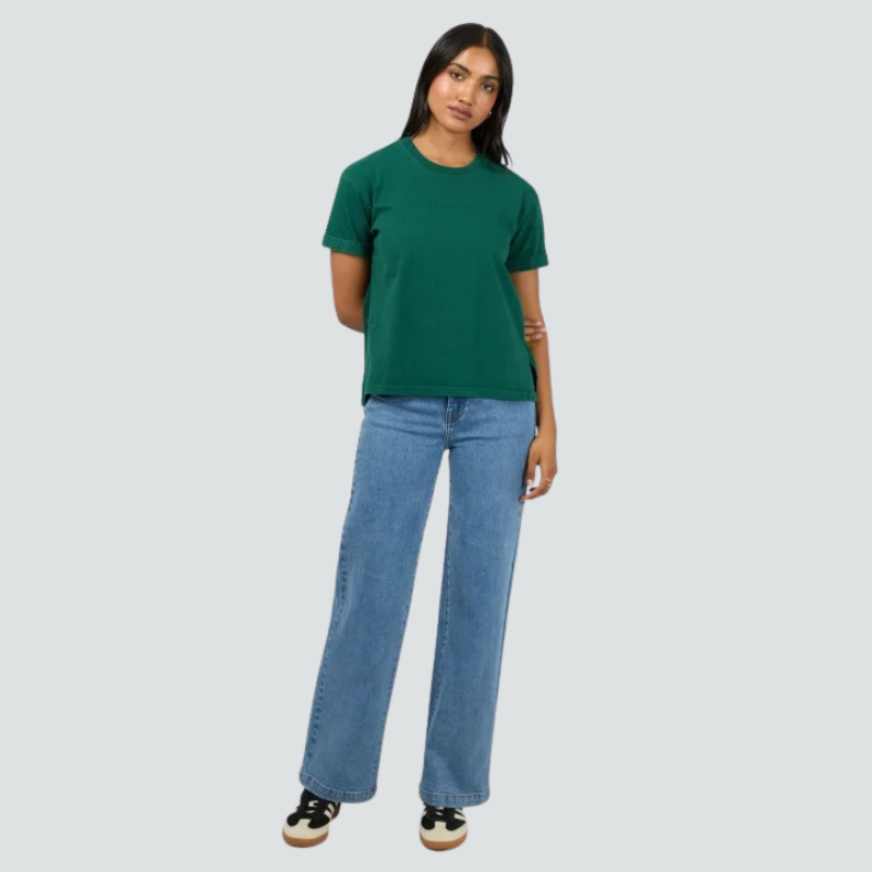 Crafted from premium cotton, this washed tee delivers effortless style with its distinctive forest green hue. The garment's softened finish creates a lived-in aesthetic that pairs seamlessly with any wardrobe. Its relaxed fit ensures comfort throughout the day, while the quality construction promises durability through repeated wear and washing. A versatile essential that transcends seasonal trends.