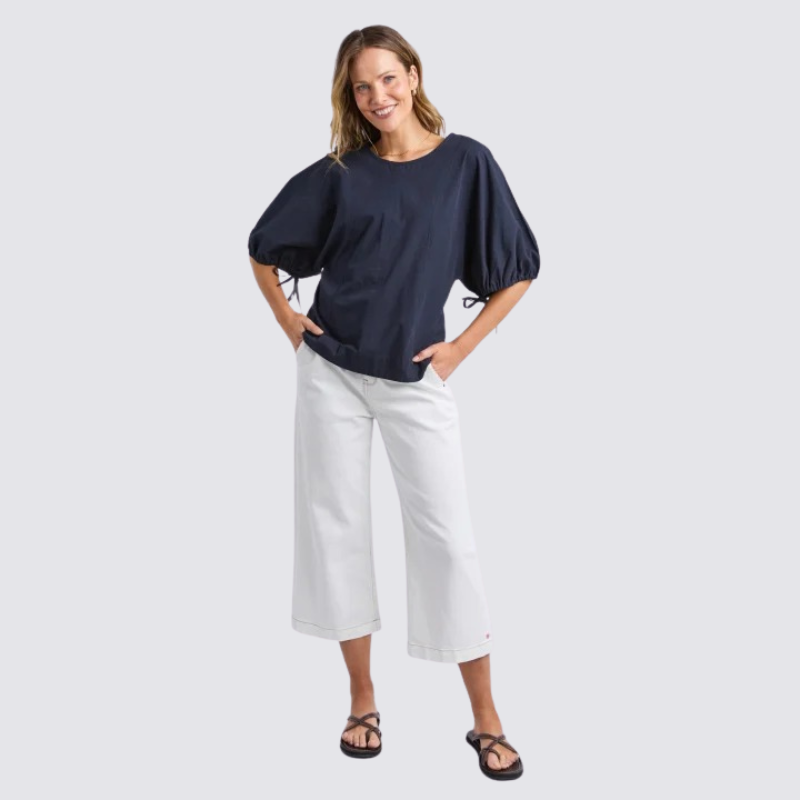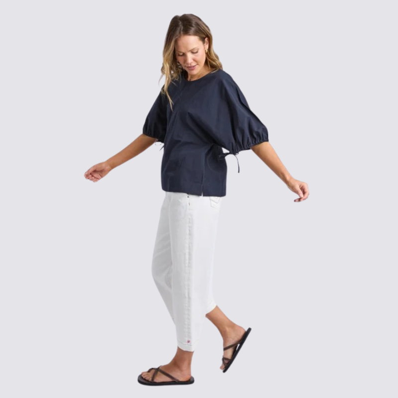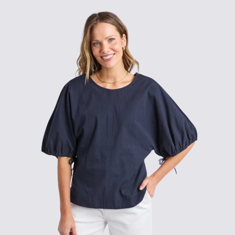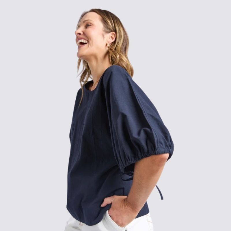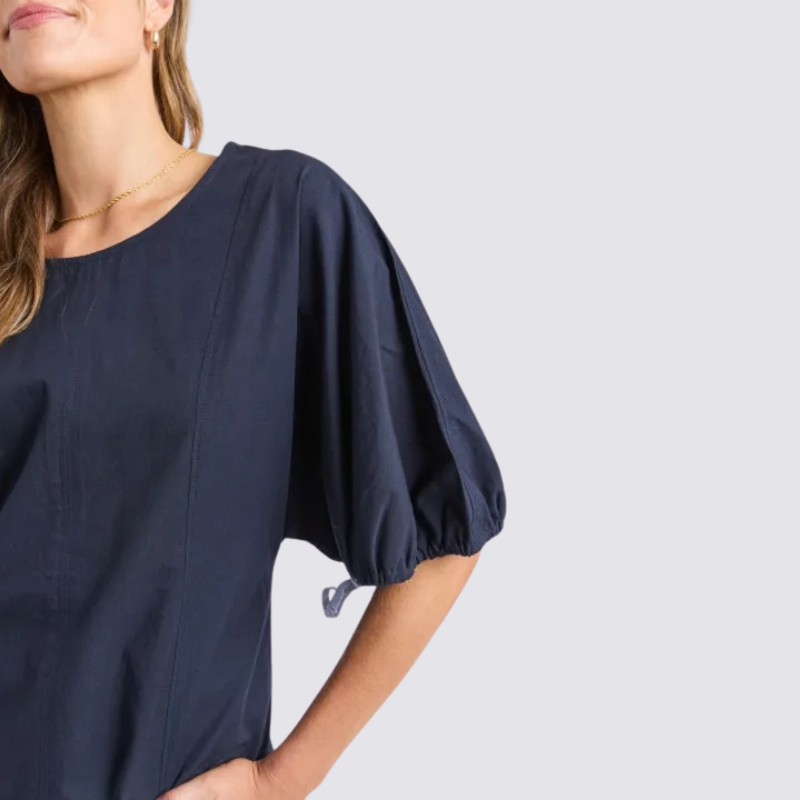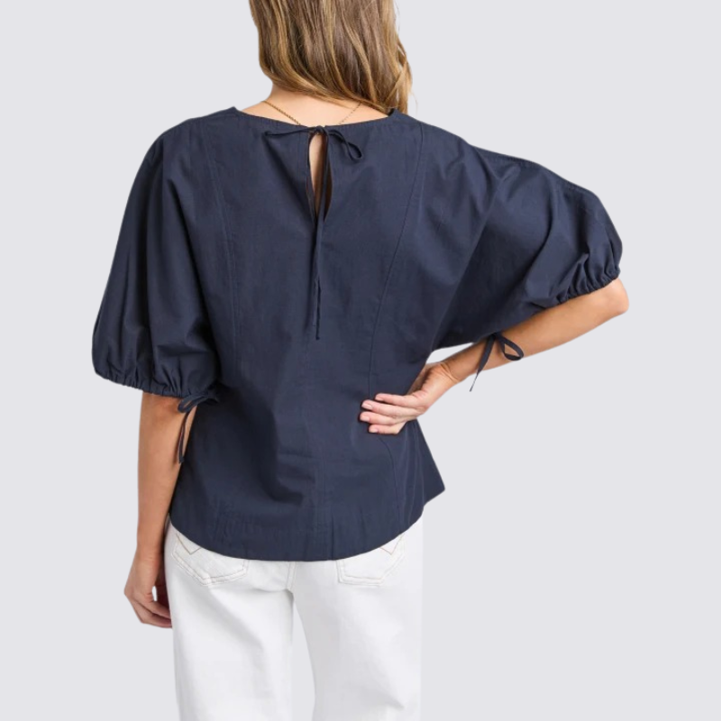 The Marie Top brings understated elegance to every occasion, whether you're heading to the office or weekend plans. Crafted from breathable 100% cotton, this versatile piece features charming sleeve ties and a gently cinched waist that flatters your silhouette while keeping you comfortable all day long. Effortlessly stylish and easy to wear, it's the perfect addition to a wardrobe that transitions seamlessly from work to play.