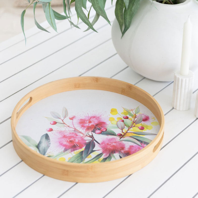 Experience the beauty of Australia's diverse flora with our Native Blooms Round Serving Tray. Perfect for serving snacks or displaying decorative items, this tray brings a touch of nature into your home. Crafted with high-quality materials, it's both functional and visually stunning. Elevate your home decor with this unique piece!
