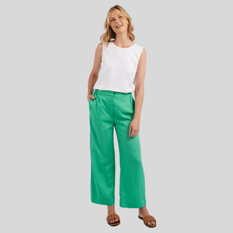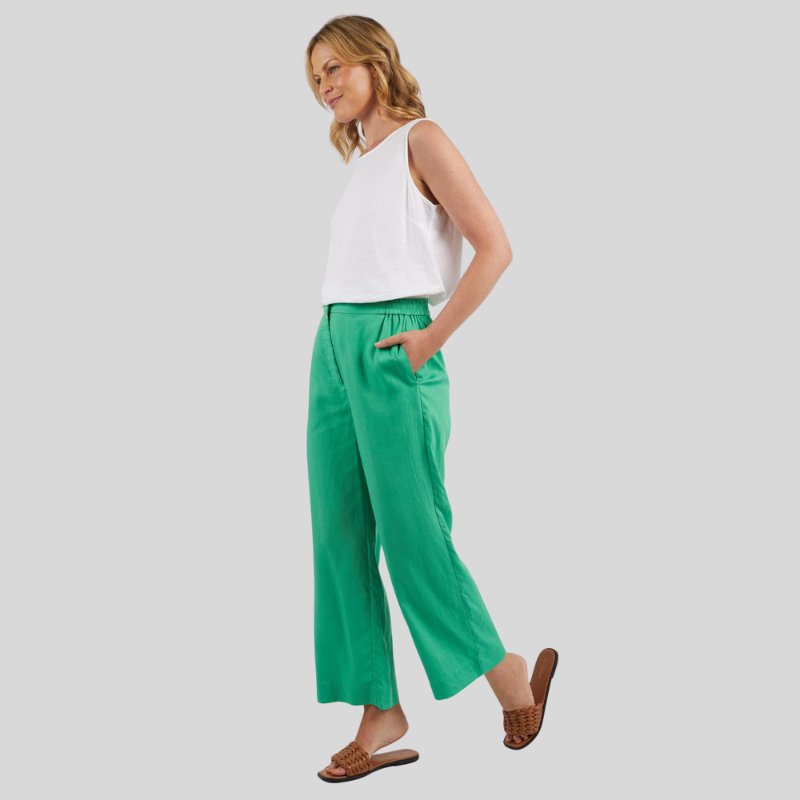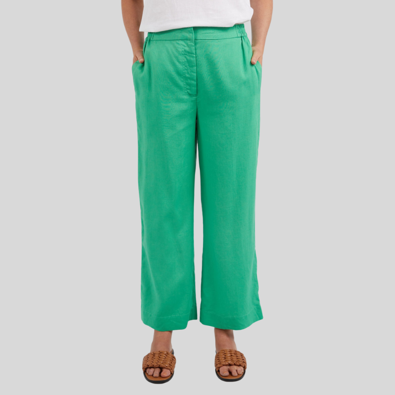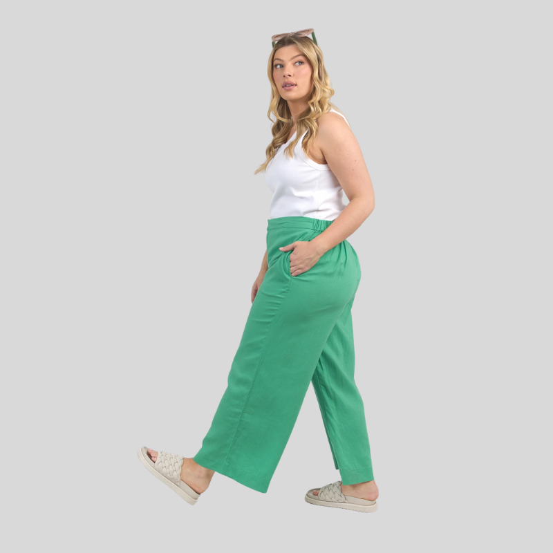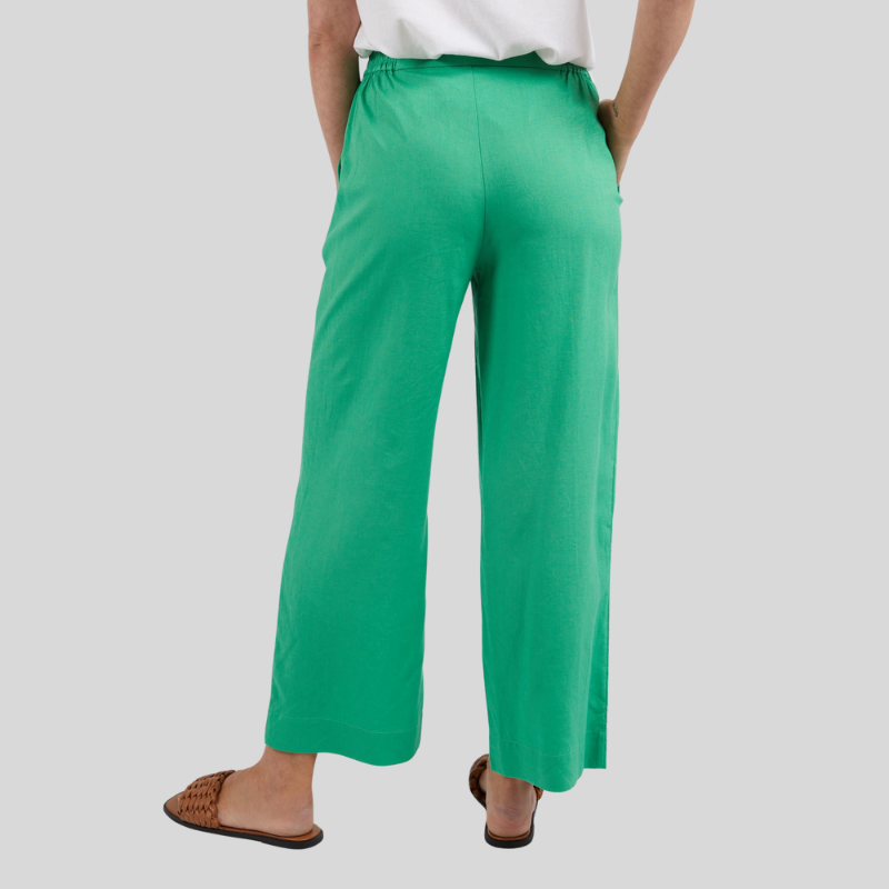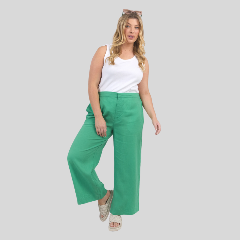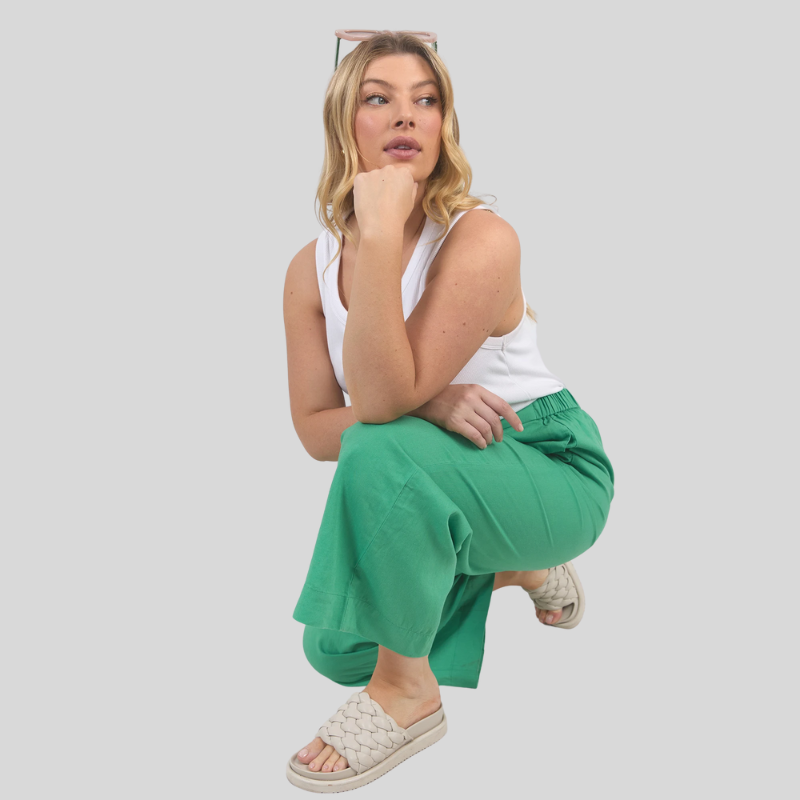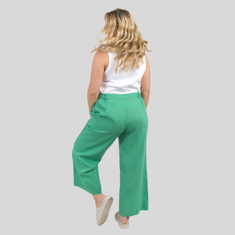 Introducing our Rosalie Pant, the perfect combination of comfort and style! With a lightweight material and a flattering flat front waistband, these pants are sure to become your go-to for any occasion. The elasticated back, pockets, and wide leg add convenience and flair. Linen Lyocell for added breathability.