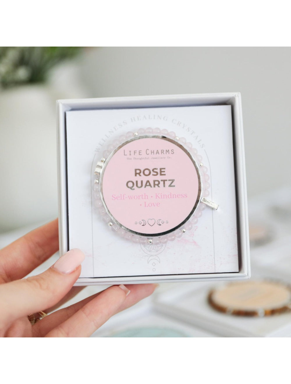 Discover the gentle power of rose quartz with Life Charms' Healing Stones Bracelet. Crafted in silver and gold, this semi-precious beaded bracelet combines timeless elegance with purposeful wellness. Each piece arrives with a detailed crystal guide revealing rose quartz's renowned ability to nurture compassion, emotional balance, and inner peace. Perfect for those seeking meaningful jewellery that supports their wellbeing journey, this bracelet seamlessly transitions from everyday wear to special occasions. Celebrate yourself or gift someone you care about with a piece that's as beautiful as it is intentional.