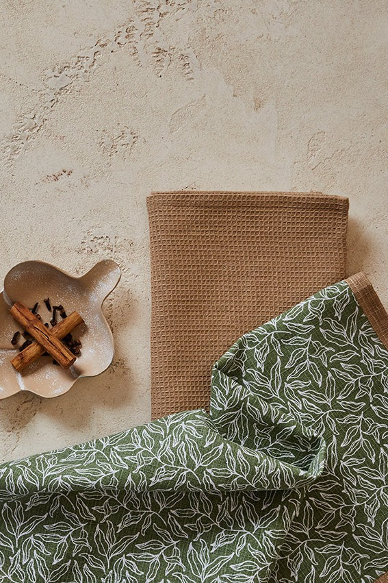 Nordhem Warm Beige Floral Tea Towel 2pk