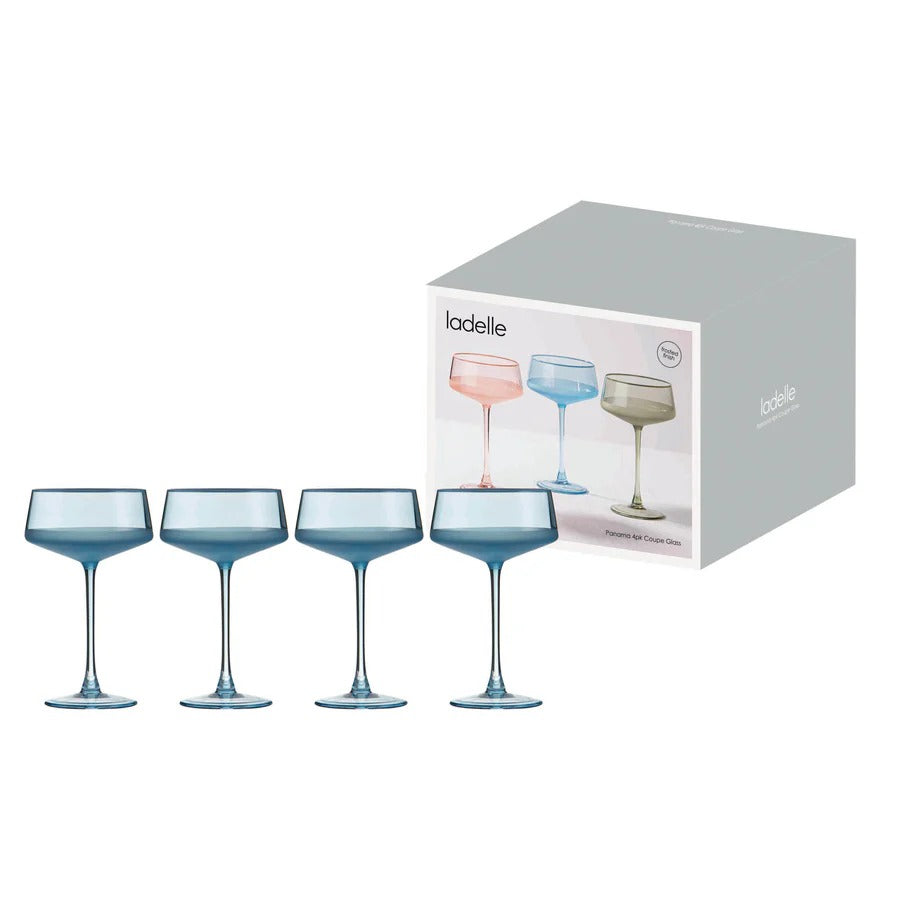 Elevate your entertaining with the Panama Ocean Coupe Glasses, a sophisticated addition to the acclaimed Panama glassware collection. Each of the four pieces showcases a distinctive design: a frosted base that diffuses light beautifully, a tonal ocean-inspired top, and a solid rim for durability and refined aesthetics. These coupes are ideal for serving cocktails, champagne, or creative mixed drinks at summer gatherings and year-round celebrations. The Ocean colourway complements the full Panama range—including tumblers, flutes, wine and cocktail glasses—allowing you to curate a cohesive, stylish table setting. Pair with matching Panama serveware to complete your entertaining collection.