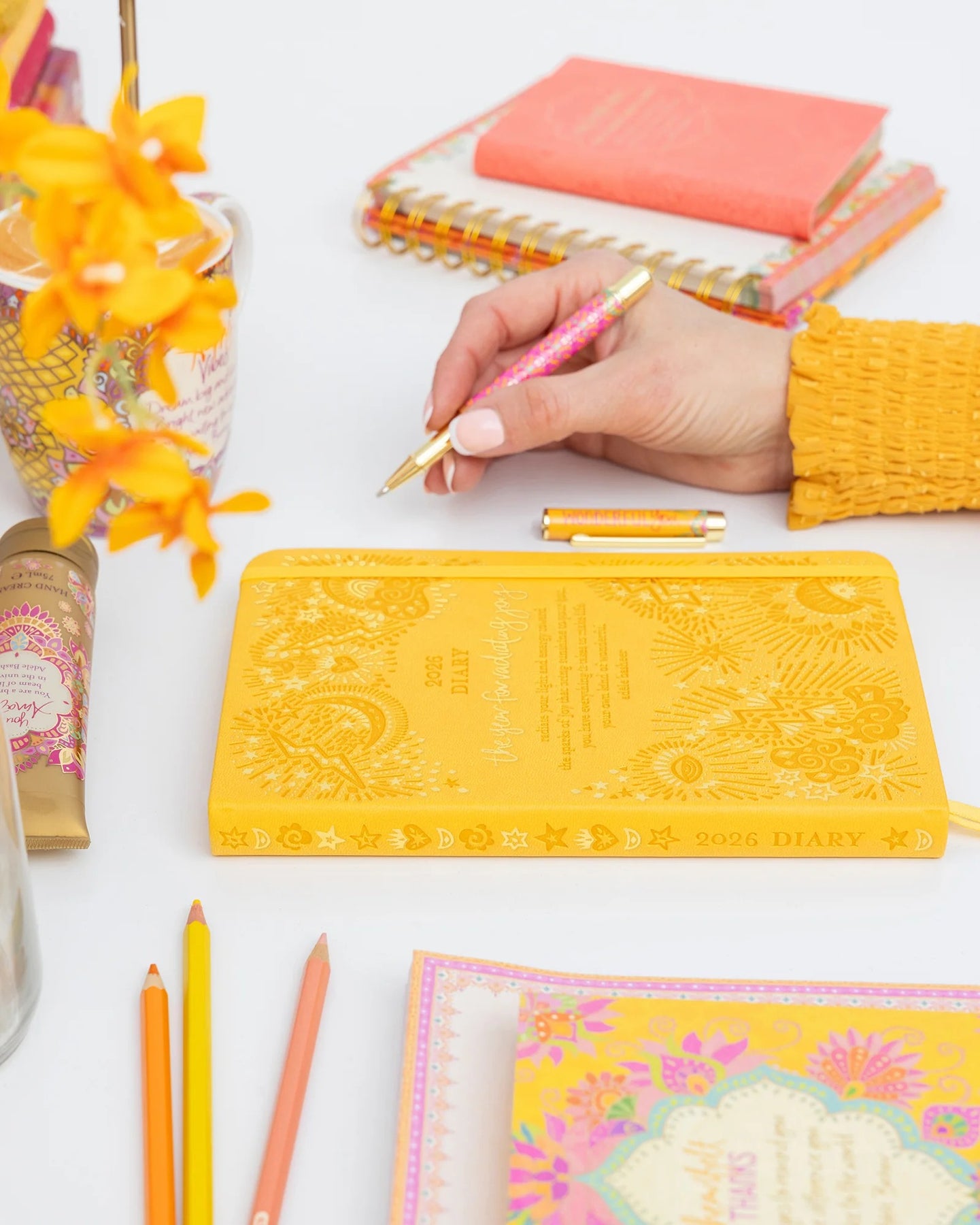 Embrace 2026 with intention and purpose using Intrinsic's The Year for Radiating Joy Diary Planner in vibrant Limoncello Yellow. This thoughtfully designed planner guides you to reconnect with your inner wisdom, transform aspirations into reality, and cultivate a life aligned with your values. Perfect for those seeking meaningful organisation combined with daily inspiration, it serves as both a practical scheduling tool and a companion for personal growth. Let this radiant diary help you navigate the year ahead with clarity, joy, and authentic self-expression.