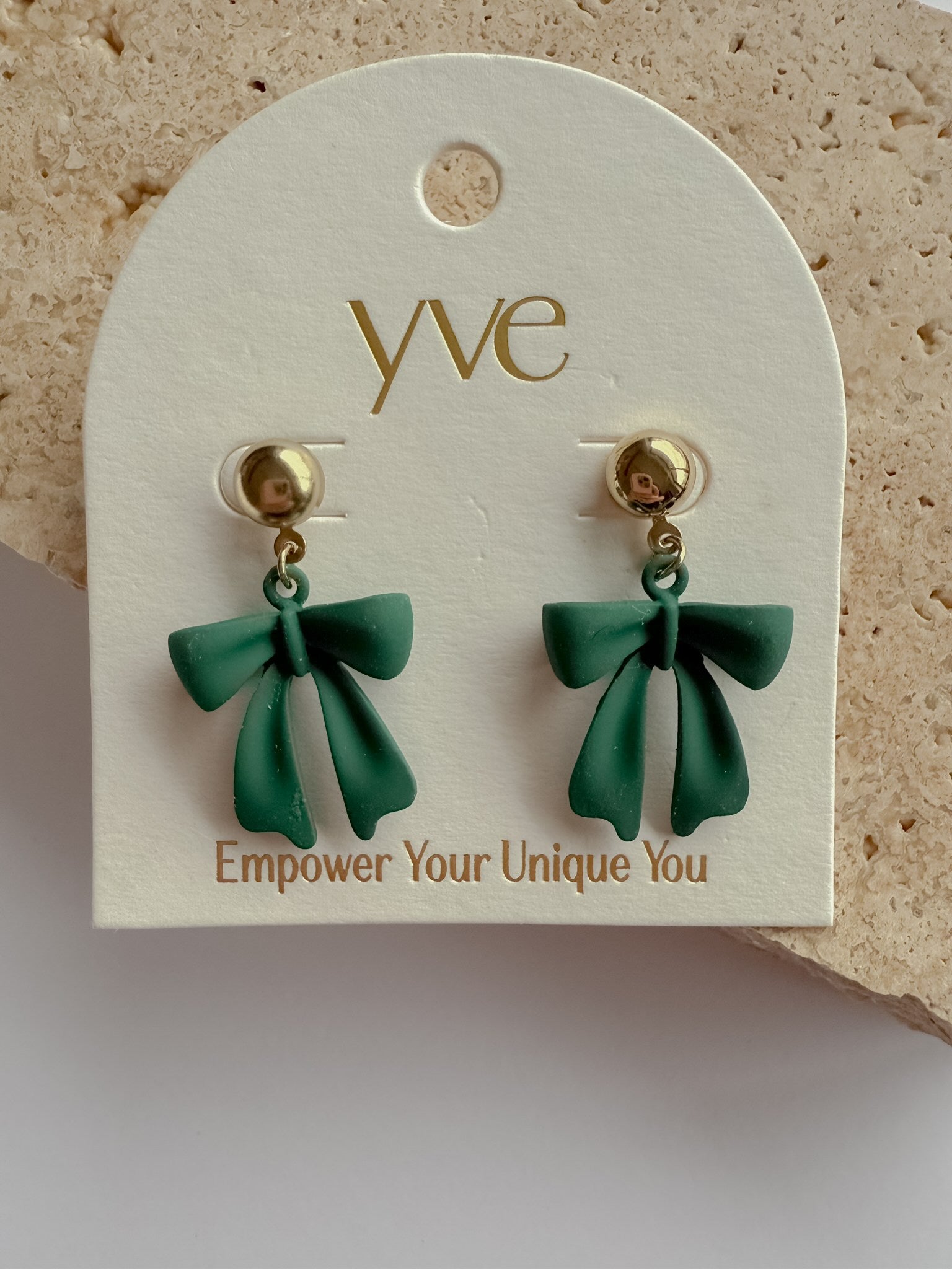 Large Green Bow Earrings