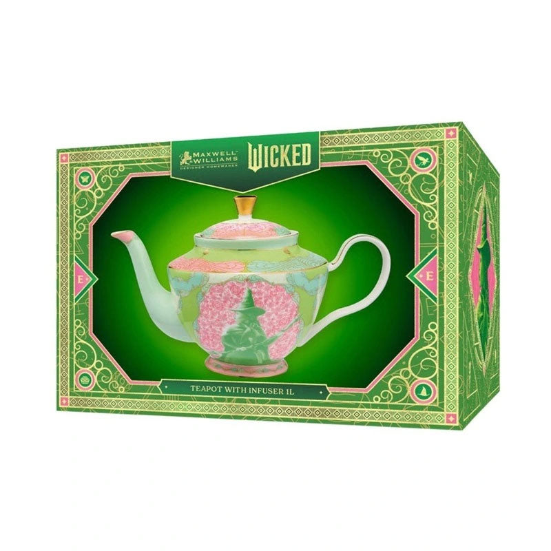 Indulge in the enchanting world of Oz with our Wicked Pink Goes Good With Green Teapot With Infuser 1L Elphaba . Crafted with an elegant design, this teapot is part of our Wicked collection, inspired by the beloved characters. Transform your home into a realm of fantasy and charm with every sip.