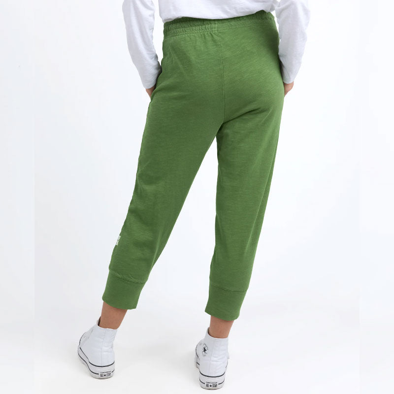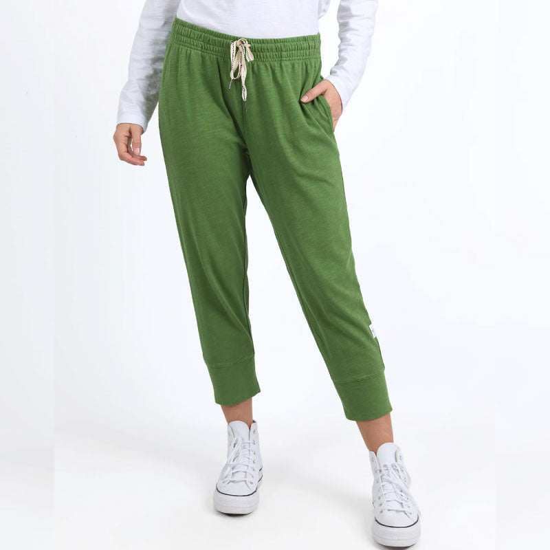 The Brunch Pant Cedar Green is the ultimate in comfort and style. With its relaxed, roomy fit and comfortable elastic waistband, these cropped pants are perfect for any occasion. The adjustable tie and large cuff detail add a touch of versatility, making them an essential addition to your wardrobe. Comfort and style, all in one!