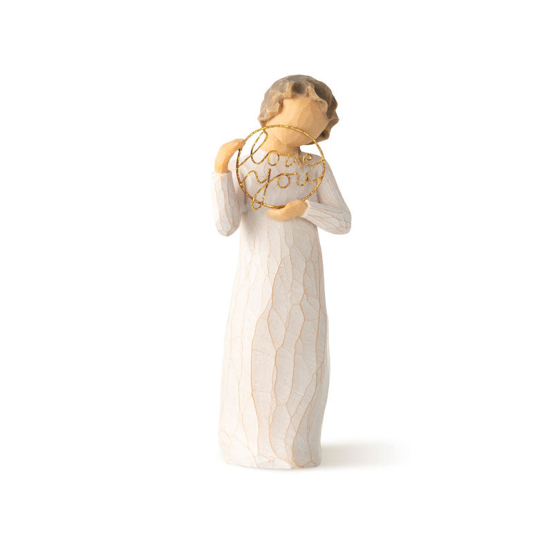 This Love You Angel Figurine serves as a daily reminder of love and kindness. Perfect as a reminder for kids or parents. Comes in a Willow Tree gift box with a special gift tag with sentiment "Just a little reminder…".