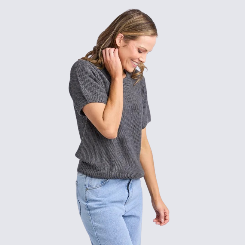 Elevate your wardrobe with the Blair Short Sleeve Knit in Sage Green, crafted from 100% cotton for unbeatable breathability and comfort. Its relaxed fit effortlessly transitions from workdays to weekend outings, offering both style and versatility. Experience the perfect blend of casual elegance and practical wearability with this must-have knitwear piece.