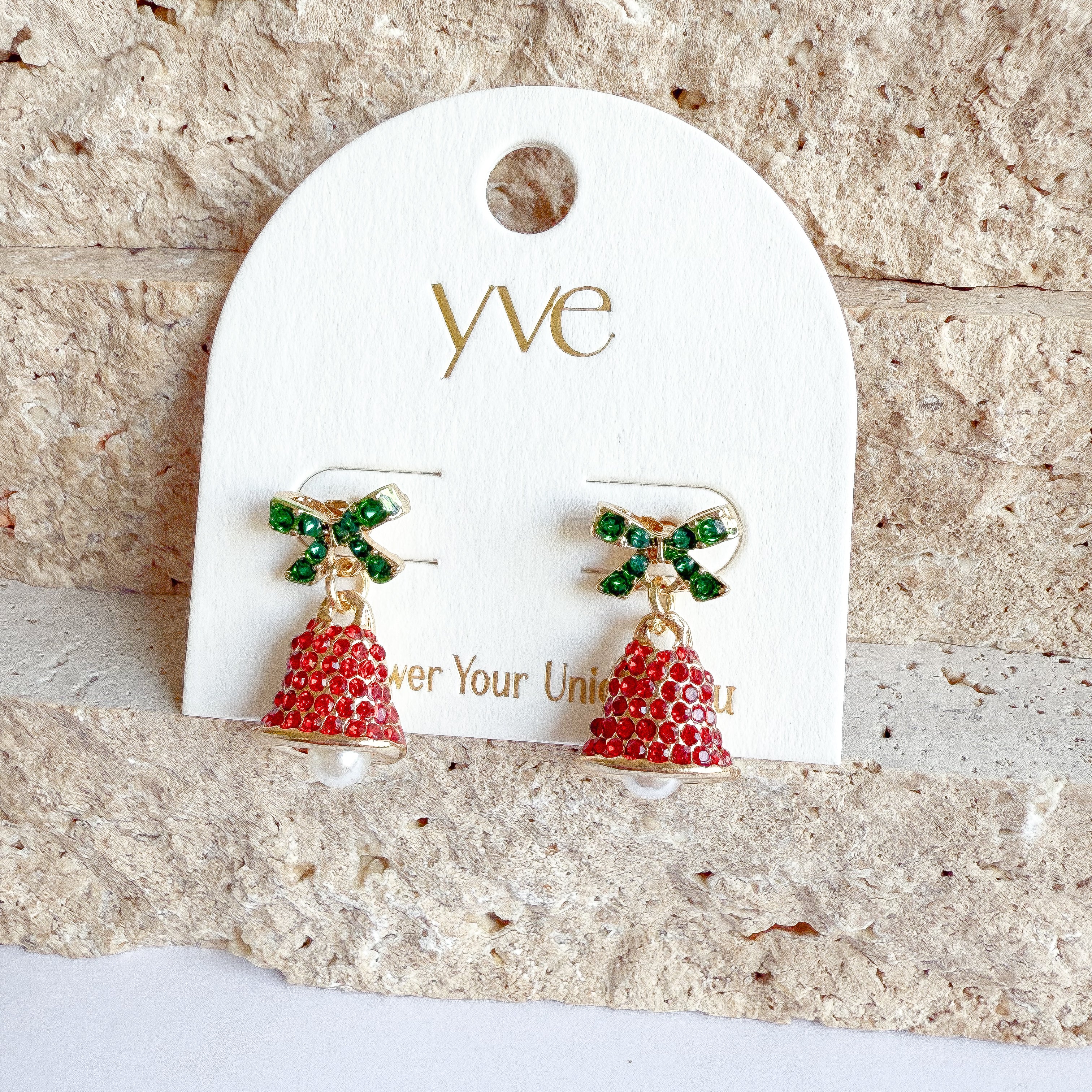 Christmas Red Bell With Green Bow Earrings