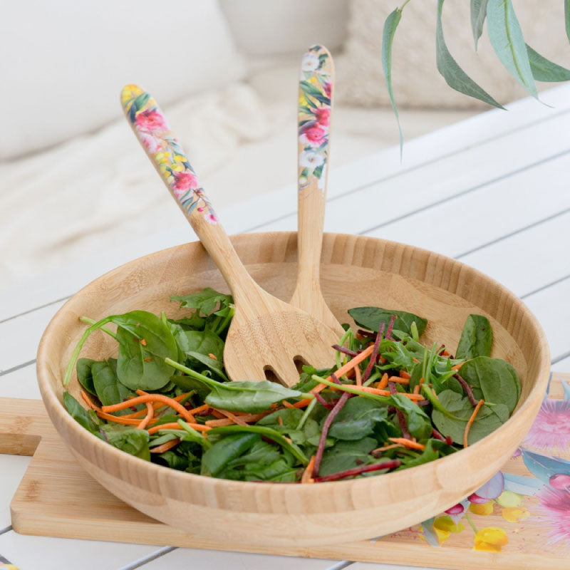 Crafted from sustainable bamboo, our Native Blooms Salad Servers are both stylish and eco-friendly. Perfect for serving your favourite salads, these servers are durable, lightweight, and add a touch of natural beauty to your table.