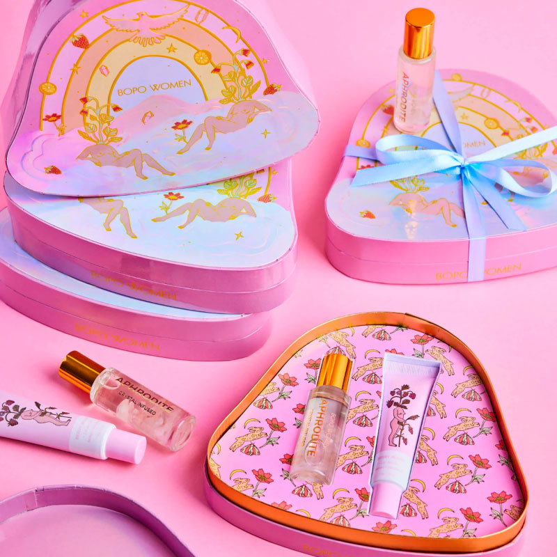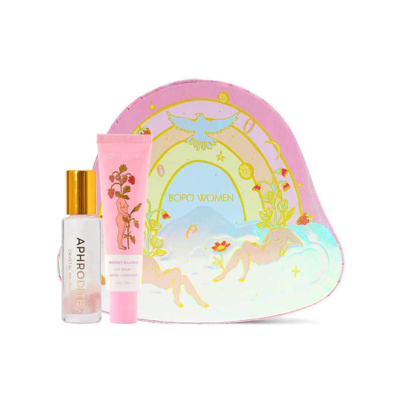 Indulge in the Self-Love Gift Set and experience natural pampering with skin-nourishing oils and a refreshingly sweet essential oil blend. Featuring the Self-Love Body Oil, made with geranium, bergamot, mandarin & neroli extracts, and the Aphrodite Crystal Infused Essential Oil Roller with ylang ylang, grapefruit, orange, patchouli and mandarin, this luxurious gift set arrives in the Self-Love Gift Box. Perfect for all skin types, and as a natural, light alternative to perfume.