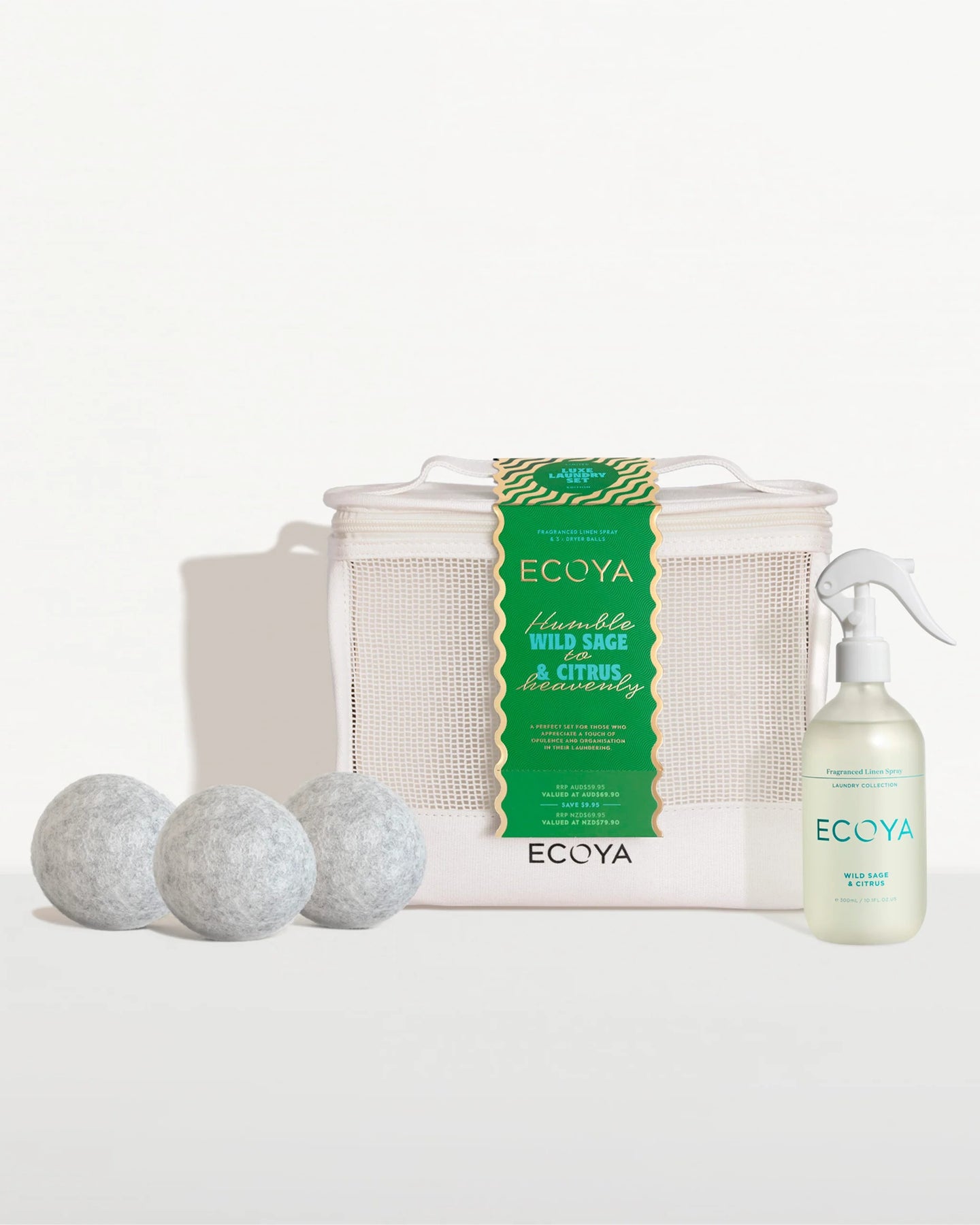 Experience the Wild Sage & Citrus Luxe Laundry Set, designed to infuse your laundry with a fresh, uplifting fragrance. The scent opens with vibrant notes of citrus, golden fruits, and fig, balanced by the earthy depth of sage, creamy coconut, warm amber, and smooth sandalwood. This carefully crafted blend not only refreshes your fabrics but also leaves them delicately scented, enhancing your laundry routine with sophisticated, long-lasting aroma.